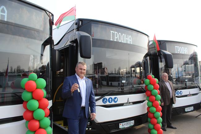 Ключи от новых шести троллейбусов с автономным ходом и девяти автобусов председатель Гродненского городского исполнительного комитета торжественно вручил самым дисциплинированным, ответственным и добросовестным труженикам предприятия со значительным стажем безаварийной работы.