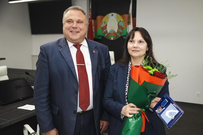 К подписанию соглашения было приурочено награждение заместителя министра транспорта и коммуникаций Натальи Александрович нагрудным знаком «За заслуги». Это высшая награда отраслевого профсоюза, которая вручается за значительный вклад в развитие профсоюзного движения, высокий профессионализм и плодотворную работу по защите трудовых и социально-экономических прав работников.