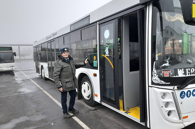 Брестчанин Павел Михайлов – водитель с более чем 30-летним стажем. Успел поработать на знаменитых «Икарусах» и ЛиАЗах. Немало поколесил по областному центру и за рулем автобусов белорусского производства. Последние полгода возит пассажиров на новеньком МАЗ-203. И уже несколько лет подряд в предновогодние дни Павел Ильич по совместительству «работает» Дедом Морозом.