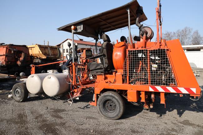 Обязательными условиями для нанесения знаков дорожного отличия должны быть плюсовая, не ниже пяти градусов температура, а также чистота и сухость асфальта, которые обеспечивает идущая впереди Hofmann и «Шмеля» спецтехника. Фургон с краской тоже из этого «кортежа».
